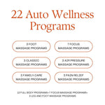 Enjoy 22 auto wellness programs including foot, classic, and pain-relief massage options.